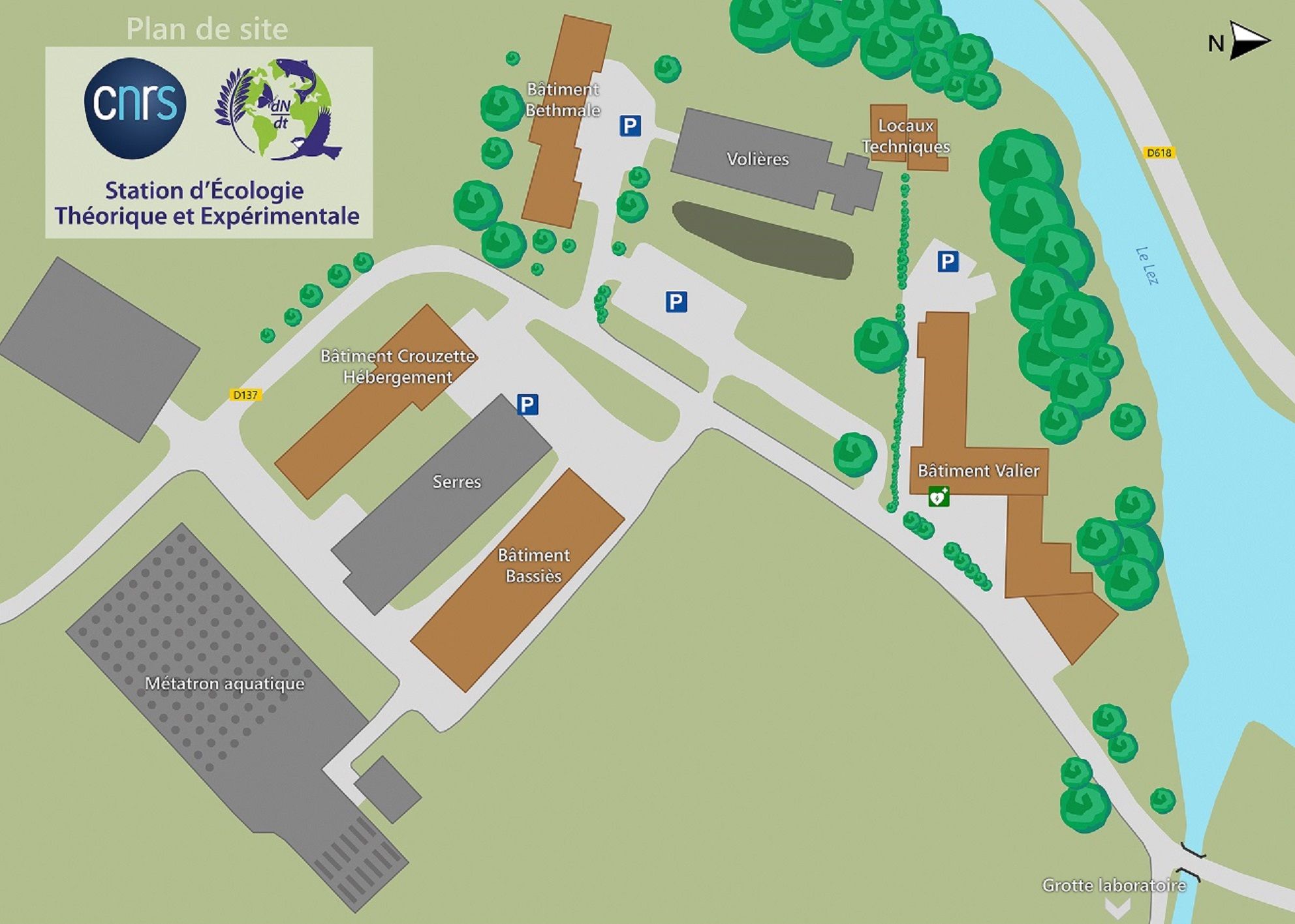 Arrivé à Moulis, au rond-point, prendre la deuxième sortie pour aller au centre du village, et suivre le panneau ‘CNRS’.