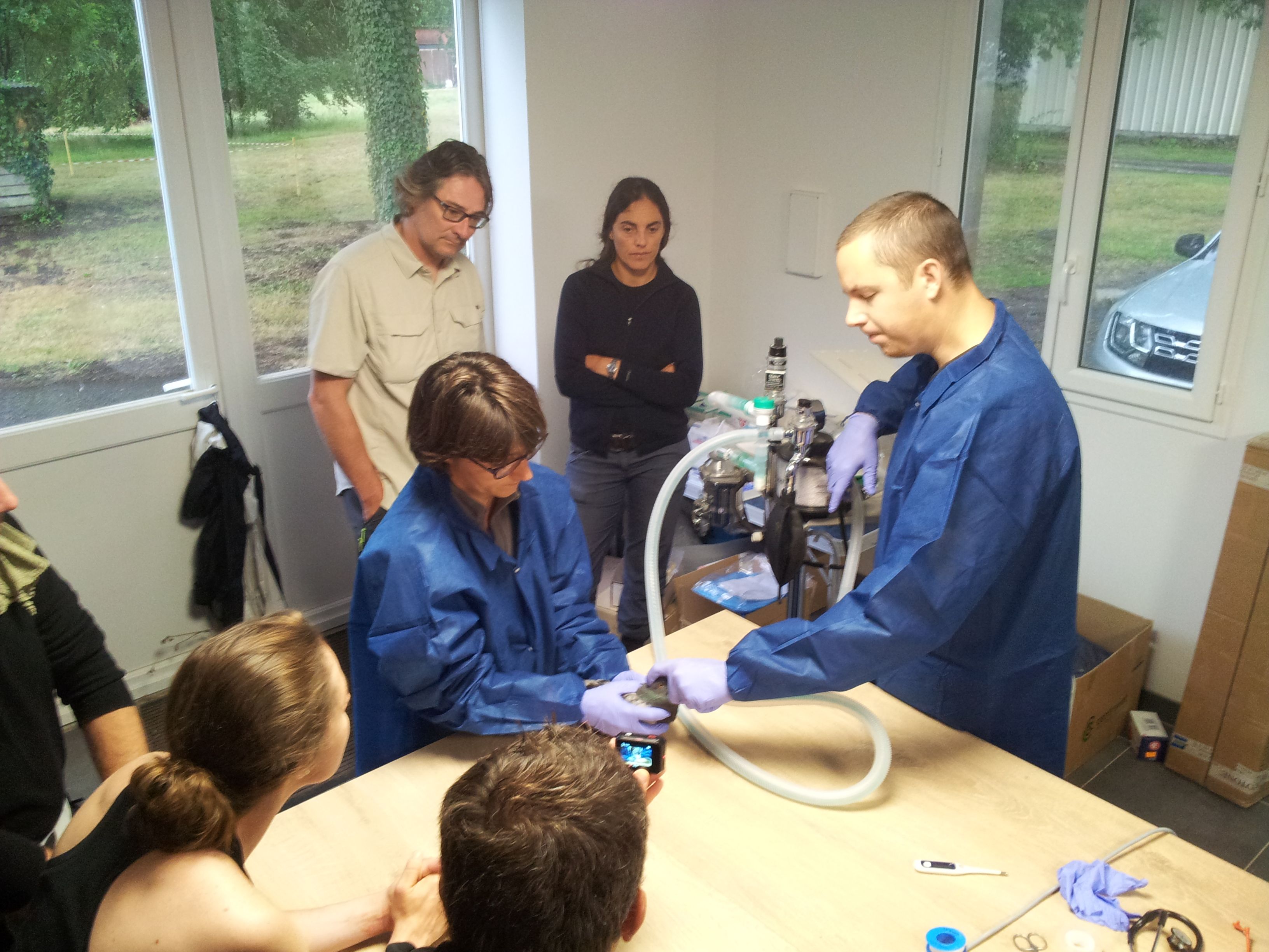 - Le second module (pratique) est constitué de rappels théoriques ainsi que des cours et des ateliers de travail adaptés à chaque groupe (mammifères, reptiles, amphibiens, oiseaux). Afin de couvrir l’ensemble des groupes ciblés, le module pratique est réaliser au sein de deux stations de terrain du CNRS : une partie des ateliers spécifiques aux mammifères, aux oiseaux, aux amphibiens (seulement les anoures) et aux reptiles (seulement les tortues et les serpents) se font au Centre d’Etudes Biologiques de Chizé (CEBC) et l’autre partie des ateliers spécifiques aux amphibiens (seulement les urodèles) et aux reptiles (seulement les lézards) sont réalisés à la SETE.