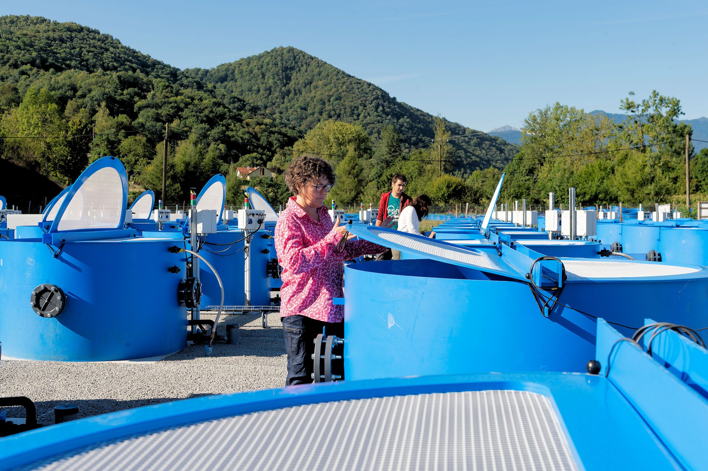 - Plate-forme lentique 2 : Elle est constituée de 150 bassins circulaires de 1,3 m3 ainsi que de 72 bassins de 350 litres chacun. Ceux-ci ne sont pas connectés et aucune régulation de la température n’est encore fournie. Ils permettent en particulier de manipuler la biodiversité ou la structure physique de l’habitat en un nombre important de réplicats.