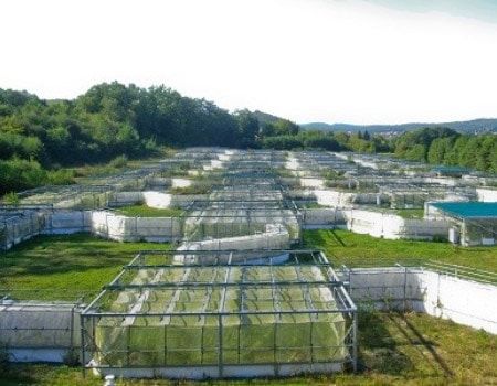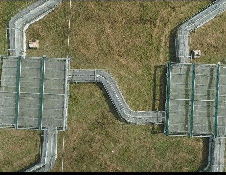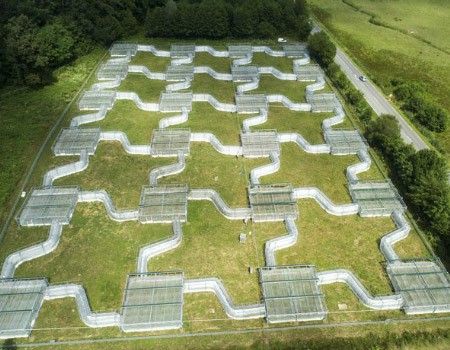 Cet équipement unique au monde est installé sur la Commune de Caumont en Ariège, installé sur 4 hectares, et constitué de 48 cages de 100 m 2 reliées entre elles par 76 couloirs de 20 mètres de long.