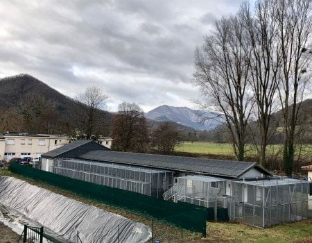 Il s’agit d’un espace de 520 m² comprennent 48 volières identiques de 1m² en intérieure et 4 m² en extérieure, plus 12 autres volières offrant jusqu’à 12m² en extérieure.